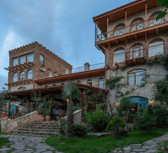 Отель находится в городе Телави, в винодельческом регионе Алазанской долины. Номера отеля Chateau Mere оформлены в классическом стиле и обставлены антикварной мебелью.